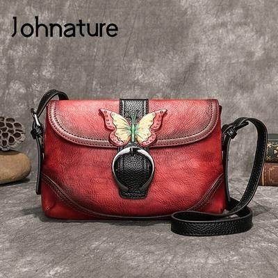 Ретро Первый слой Коровья кожа Женщины Сумка Ручная роспись Досуг Сумки На плечо Hasp Маленькая Леди