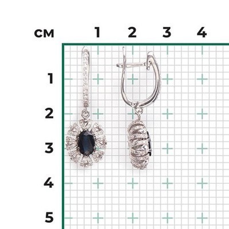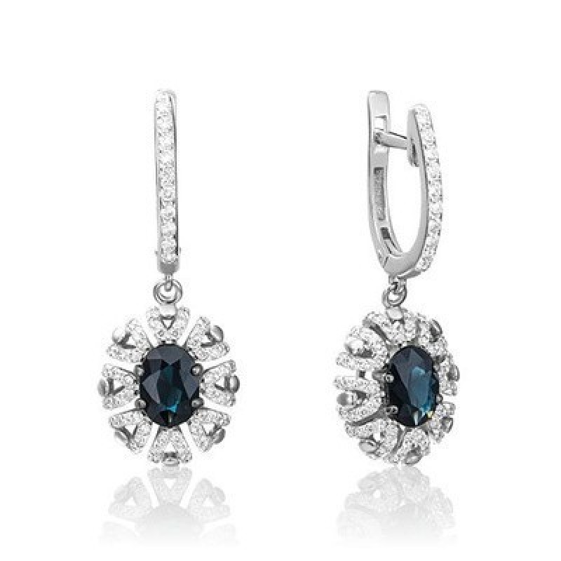 PLATINA Серьги с английским замком из белого золота 585 пробы c сапфиром и бриллиантами