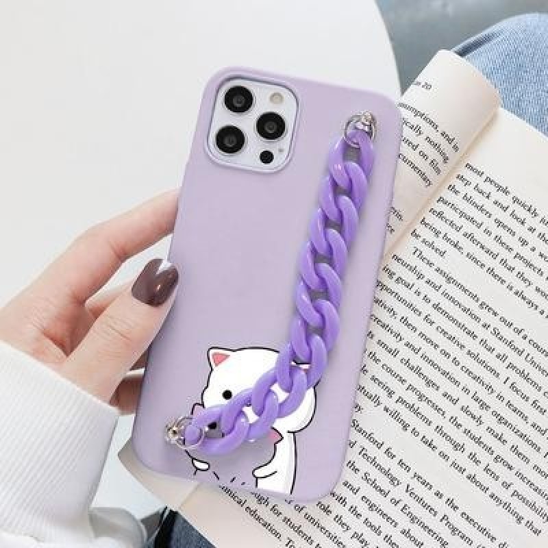 Симпатичные чехлы для телефона Cat с цепочкой для iPhone 12 11 Pro 8 7 6 Plus 5 SE 2020 X XR XS Max